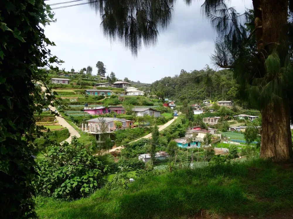 Village in the Sri Lankan Highlights fill the hillside with homes and foliage.